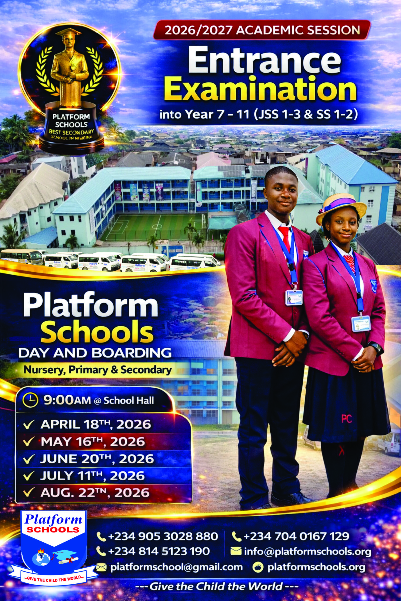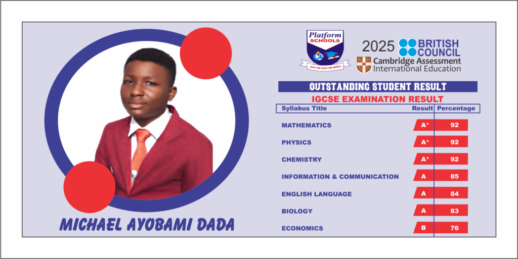 Platform Schools comprise Nursery, Primary Secondary and College. Government approved (Nigerian & British) co-educational school with campuses at Ipaja, Ayobo and Ikola Lagos state.